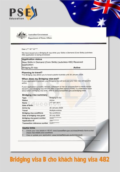 🔖 Tại Úc: Một khách hàng đang giữ visa 482 vừa nộp thành công Bridging visa B, mở ra cơ hội quay về Việt Nam trong thời gian ngắn mà vẫn đảm bảo hợp pháp trở lại Úc học tập – làm việc.