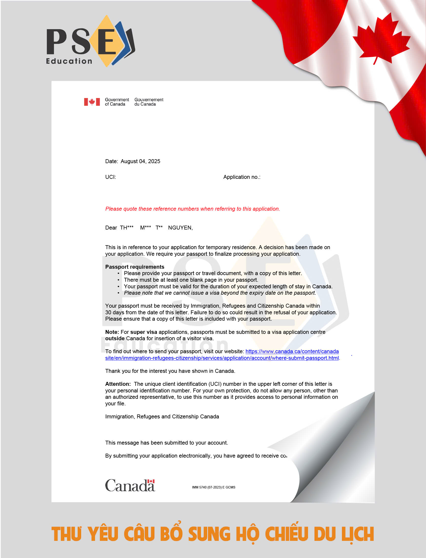 05/08: Nhận yêu cầu bổ sung hộ chiếu